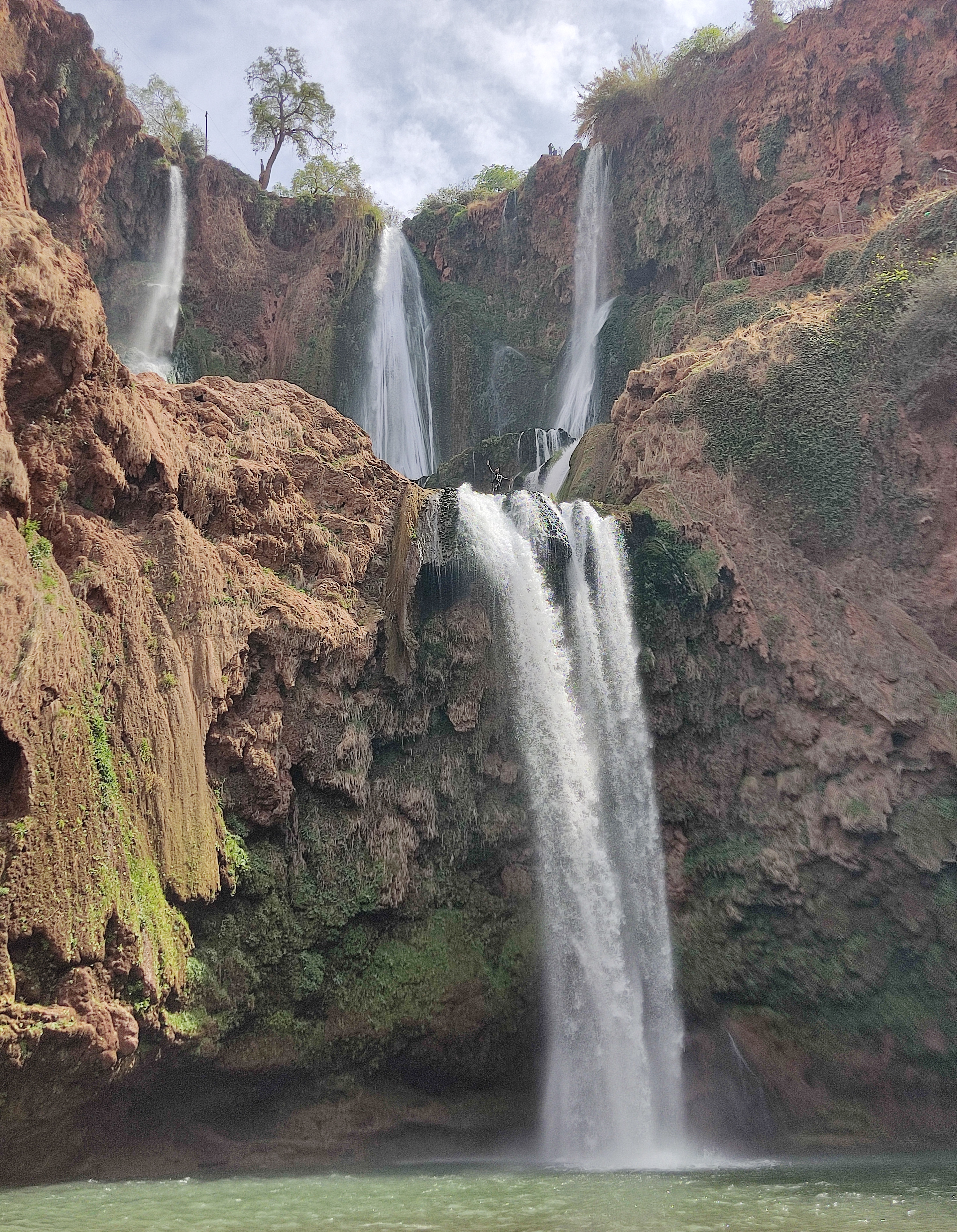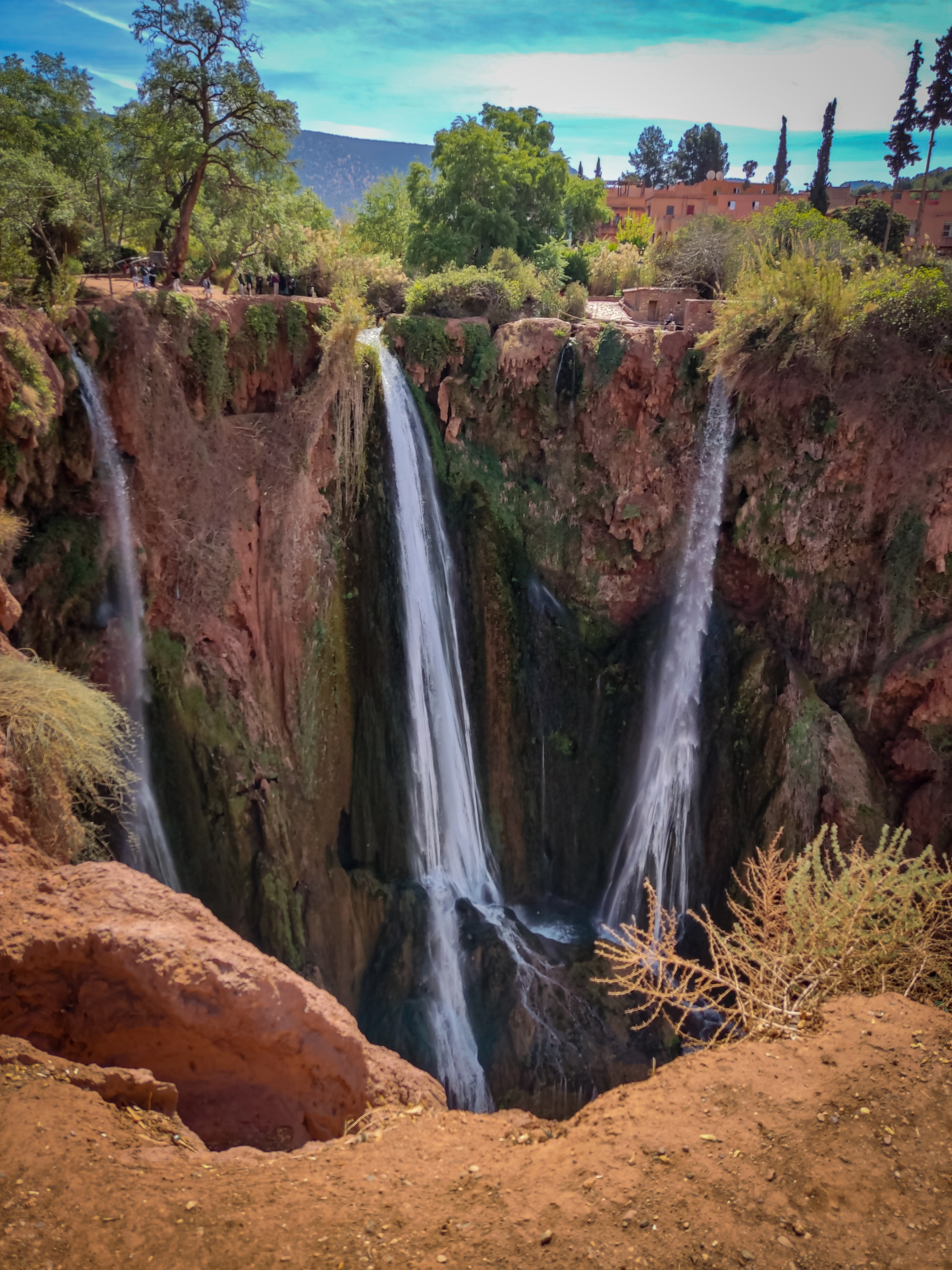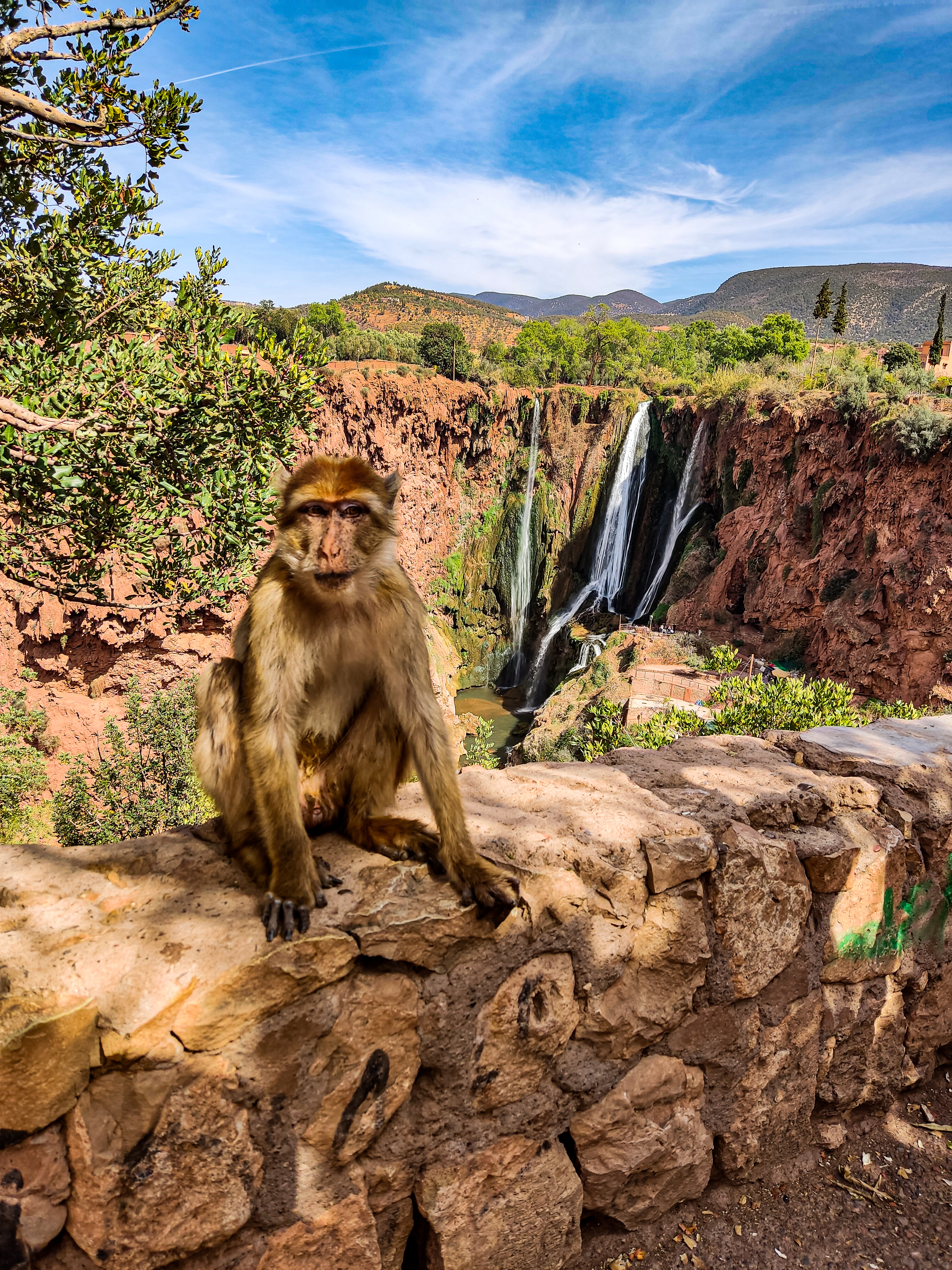 Les cascades d’Ouzoud sont des chutes d’eau situées dans le moyen Atlas, à 150km de Marrakech, soit environ 3h de minibus. A l’arrivée au village d’Ouzoud, on admire la vue sur les cascades qui plongent dans le bassin situé 110m en contrebas. On suit le guide à travers les oliveraies jusqu’à une coopérative d’huile d’argan, pour y découvrir la culture berbère. On continue sur les sentiers, où j’ai acheté un délicieux jus d’orange frais. Ensuite, on embarque à bord d’un bateau traditionnel pour une petite promenade sur le bassin au pied des cascades. Ensuite, on savoure un déjeuner berbère, dans un restaurant surplombant les chutes, environ 10€ le repas (pas compris dans l’excursion). Après le déjeuner, on monte une série d’escaliers pour sortir de la vallée, accompagnés par les signes, avant de reprendre la route retour à Marrakech.