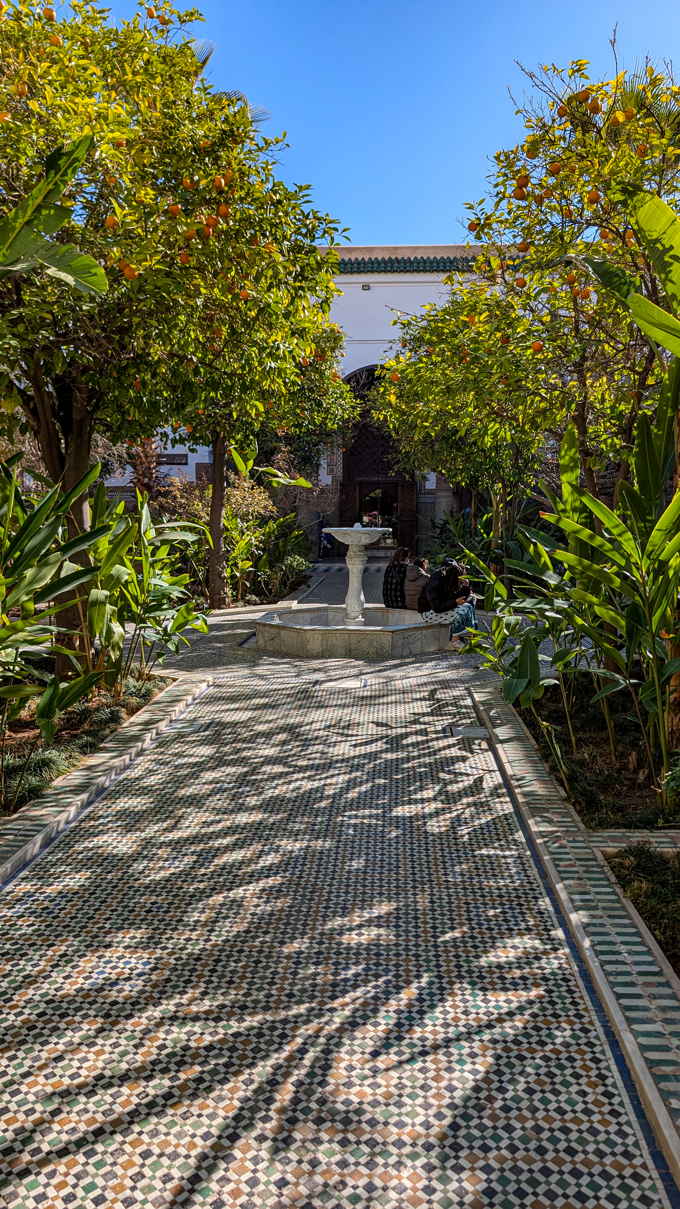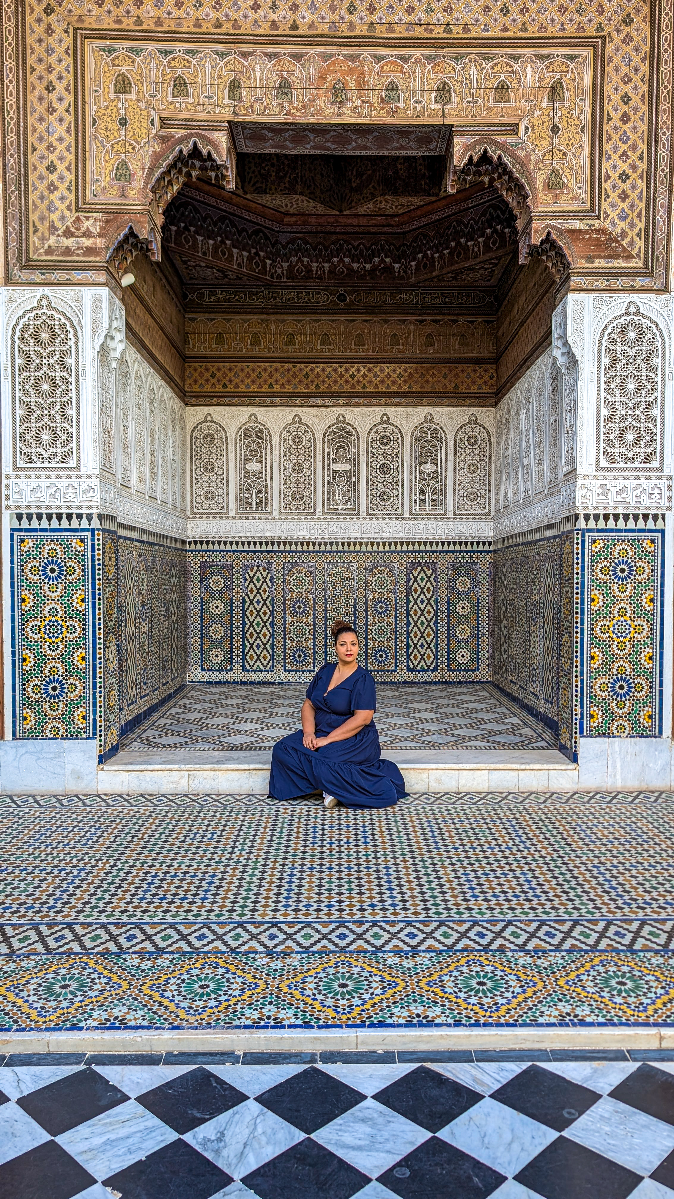 J’ai réalisé ces 3 visites dans cette ordre ci, j’y suis allée à pied de mon riad (environ 10 min de marche). J’étais à 9h devant le Palais El Badi, et j’ai fini la matinée vers midi. J’ai acheté des brochettes dans la rue et du pain pour me faire un sandwich que j’ai mangé au riad.