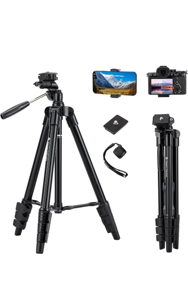 - Trépied Fotopro DIGI 3400 Trépied pour smartphone et appareil photos en aluminium de 120cm hauteur réglable entre 39cm et 120cm, poids 570g avec télécommande bluetooth