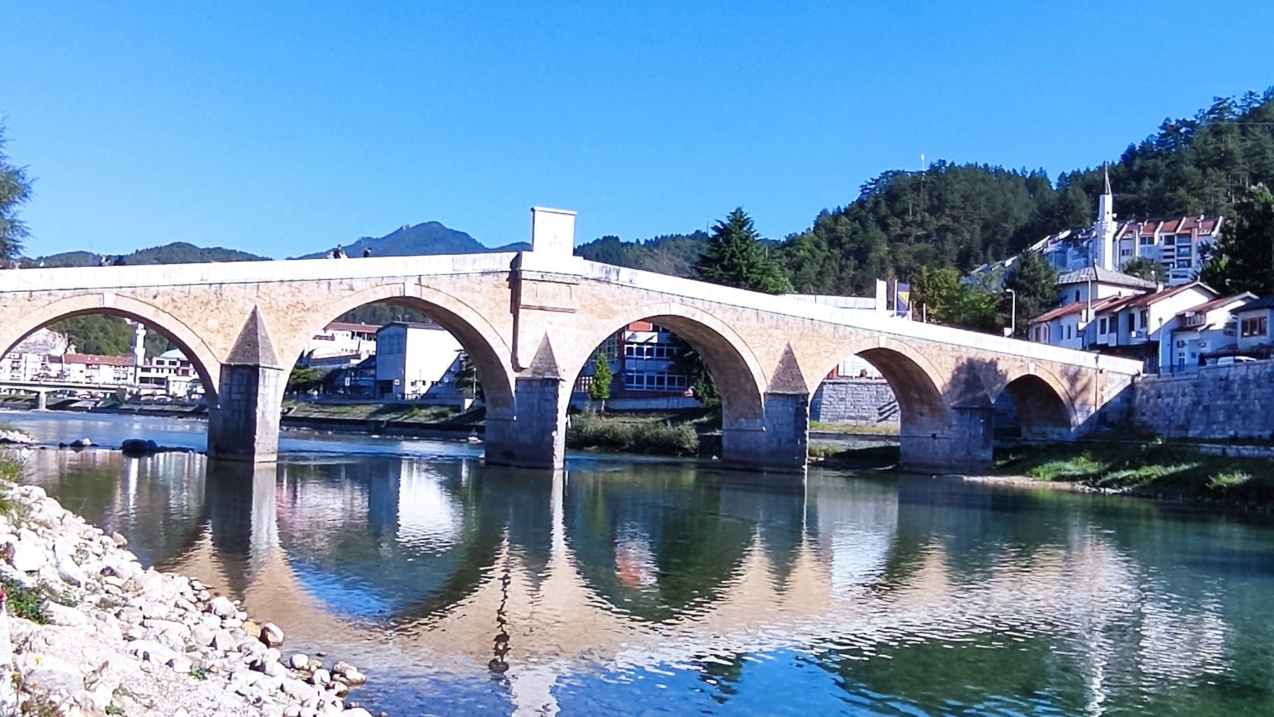 Après un petit déjeuner, je prends la route dès 8h en direction du village de Konjic. Konjic est une charmante ville située au coeur de la Bosnie et à environ 1h de route de Sarajevo, est célèbre pour son riche patrimoine culturel et son cadre naturel pittoresque. L’un des sites emblématiques de Konjic est son pont en arc. Un pont ottoman de XVIe siècle qui enjambe la rivière Neretva. Après 1h de balade au soleil dans ce village, je récupère ma voiture que j’ai laissé au parking non loin de là, 1 BAM/heure (0.50€).