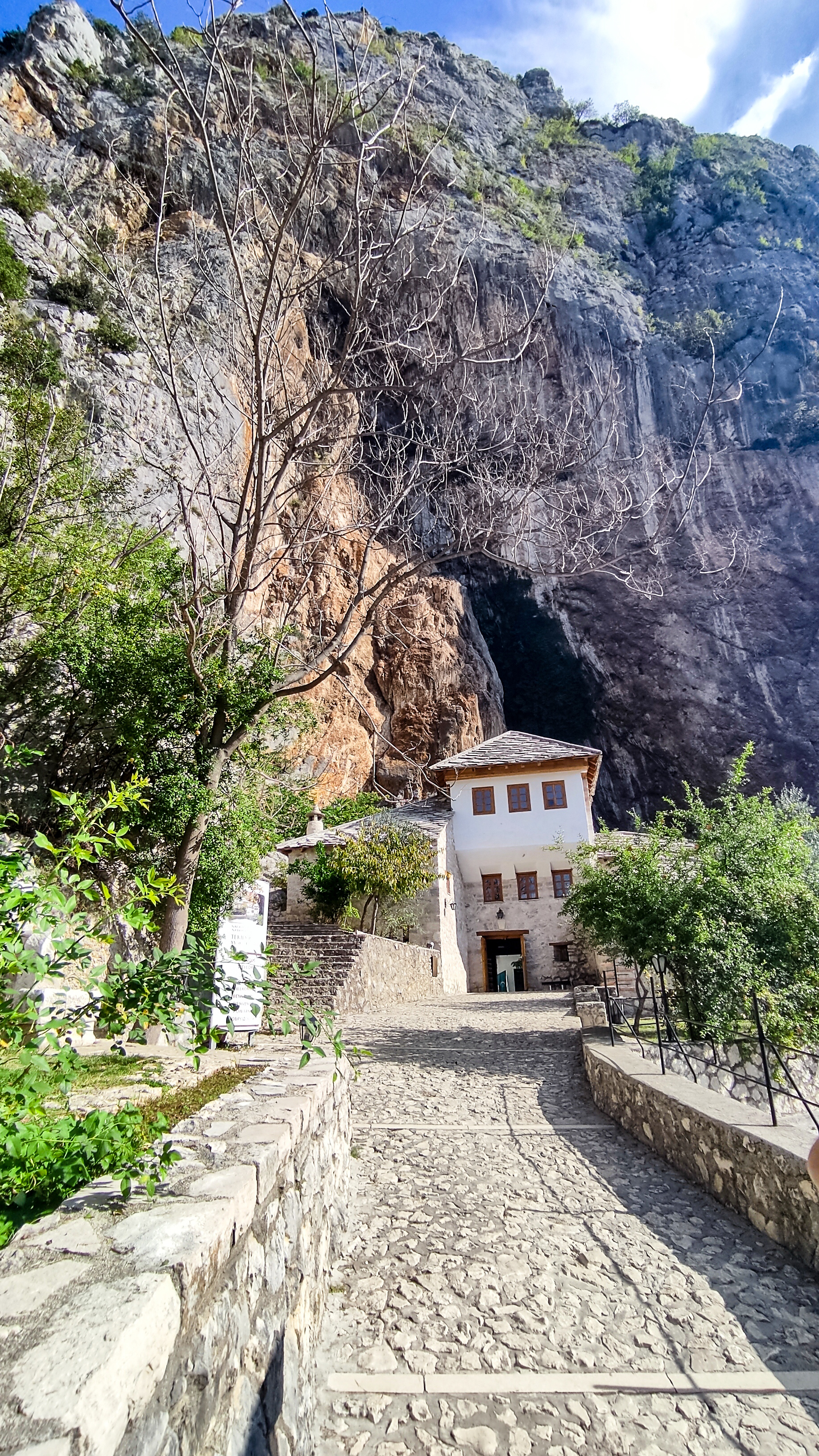 1ère étape : Blagaj Blagaj est un village pittoresque niché au pied d’une falaise rocheuse. La tekke, ou maison de derviches, est un site emblématique avec son architecture ottomane bien préservée, offrant un aperçu de l’histoire religieuse et culturelle de la région. On peut déambuler dans les ruelles pavées, explorer les petites boutiques d’artisanat local et profiter de la cuisine bosniaque des restaurants. La tekke est ouverte de 08h30-20h30 et l’entrée coûte 10BAM (ou 5€). Le parking coûte 4 BAM (ou 2€)